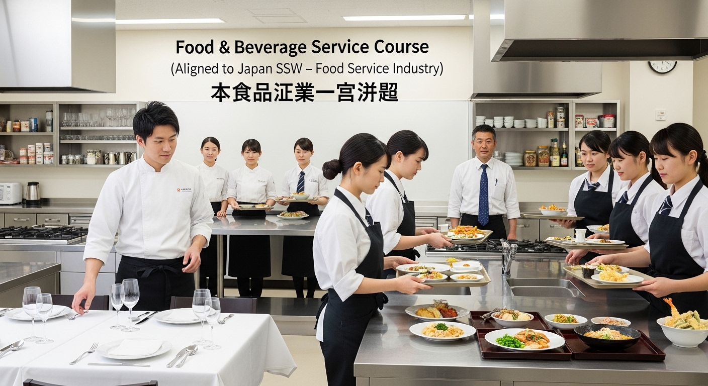 The Food & Beverage Service Course is aligned with the Japanese Specified Skilled Worker (SSW) – Food Service Industry, focusing on operational skills required in restaurants, cafés, hotels, and catering establishments in Japan. The course covers food service methods, customer service standards, menu handling, basic food preparation support, hygiene and sanitation, and teamwork in fast-paced service environments. Learners are trained to follow standard operating procedures, maintain cleanliness, and deliver consistent service quality. Special attention is given to workplace safety, efficiency, time management, and service etiquette expected in Japanese food service operations. This course prepares learners to meet the practical skill requirements of the SSW Food Service sector and adapt to Japanese hospitality work culture.